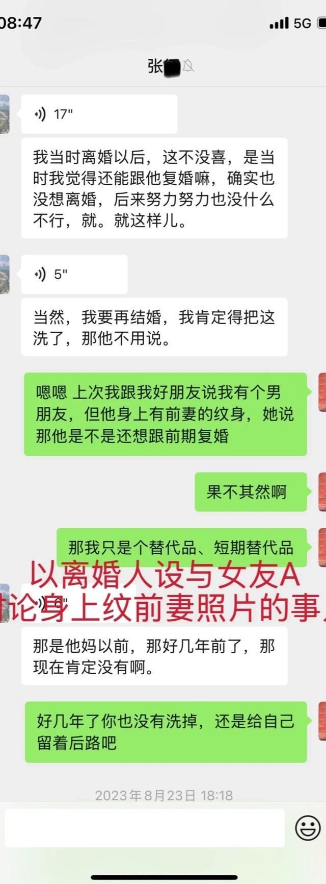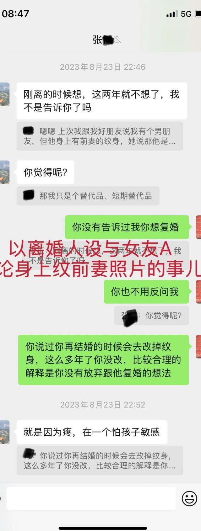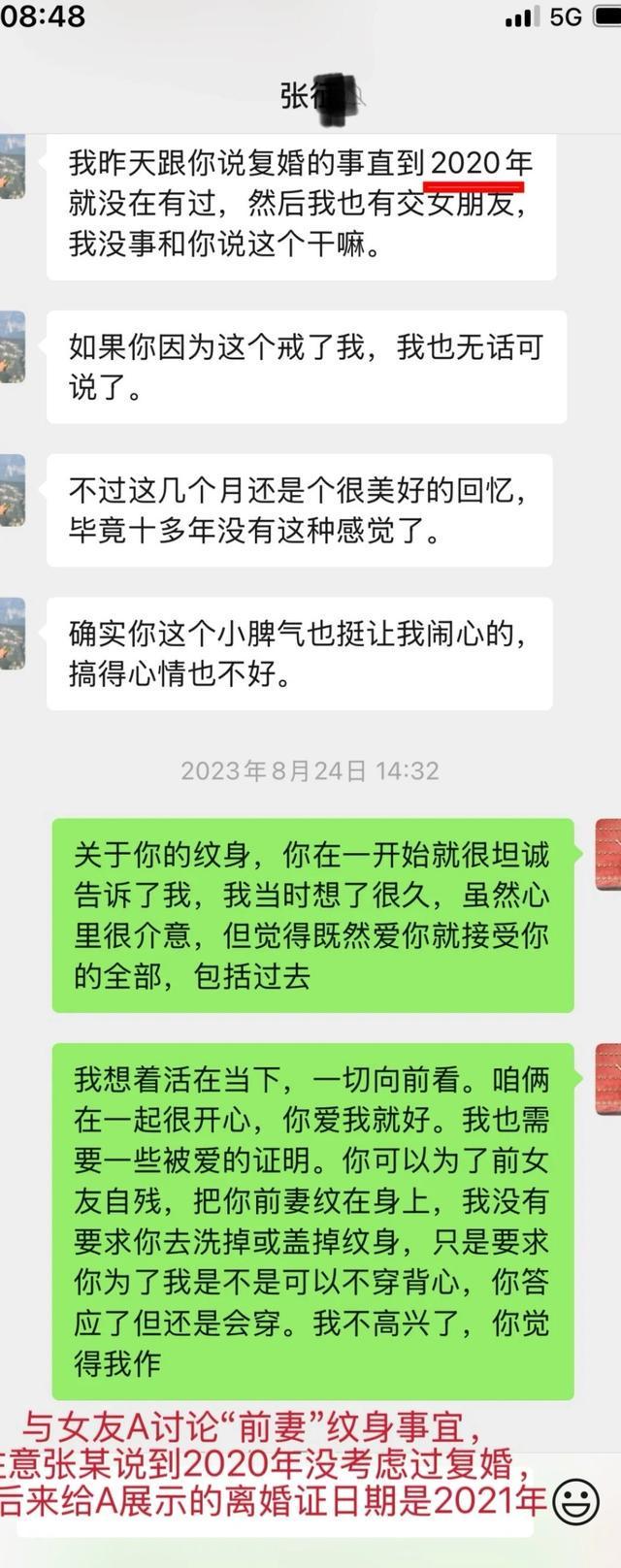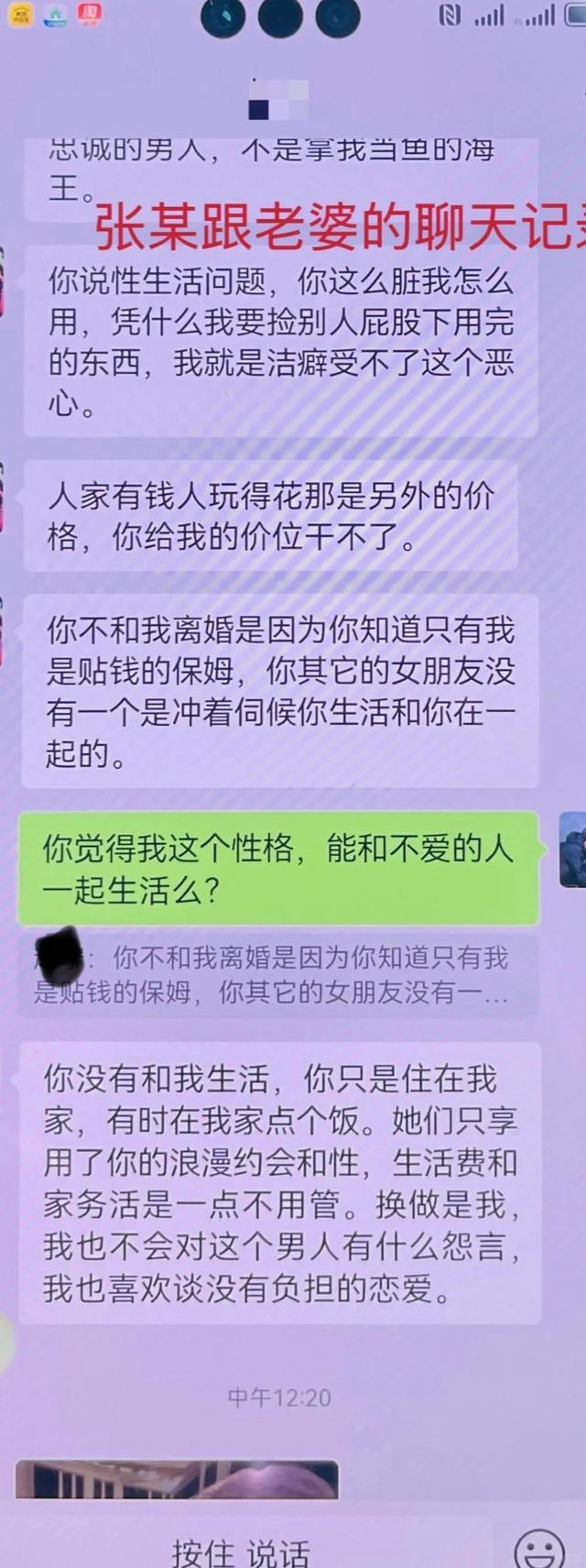 偶然机会,A看到了张某跟他所谓“前妻”其实是老婆的对话记录,才知道真心付出两年多,竟然是“被小三”!